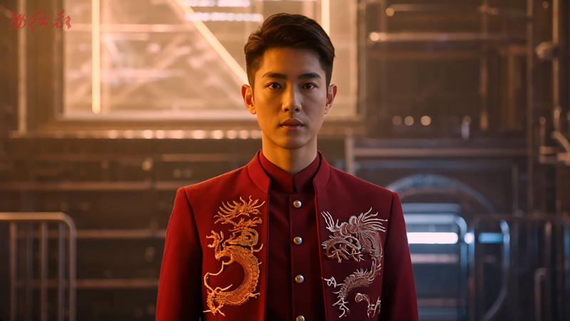 在“金·霜锷铸魂”篇章中,红都以龙泉剑锻制技艺为灵感,将非遗烫金工艺与京绣完美融合,复刻龙泉宝剑的金属雕刻纹样,打造服装上的金属质感纹样。红都作为拥有“红都中山装制作技艺”和“京式旗袍传统制作技艺”双非遗认证的老字号品牌,此次创新设计延续了服务国家重大外事活动的精湛工艺,也让千年铸剑智慧在智能穿戴时代焕发新生。
